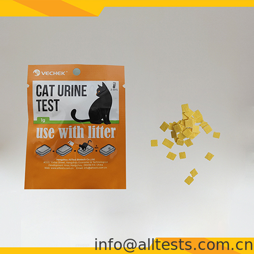3. Dopo che il gatto ha urinato, attendere 5 minuti, osservare il cambiamento di colore dell'area bagnata dall'urina sulla lettiera.