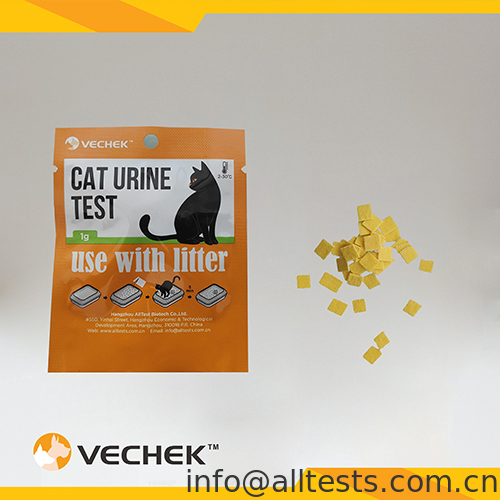 3. Dopo che il gatto ha urinato, attendere 5 minuti, osservare il cambiamento di colore dell'area bagnata dall'urina sulla lettiera.