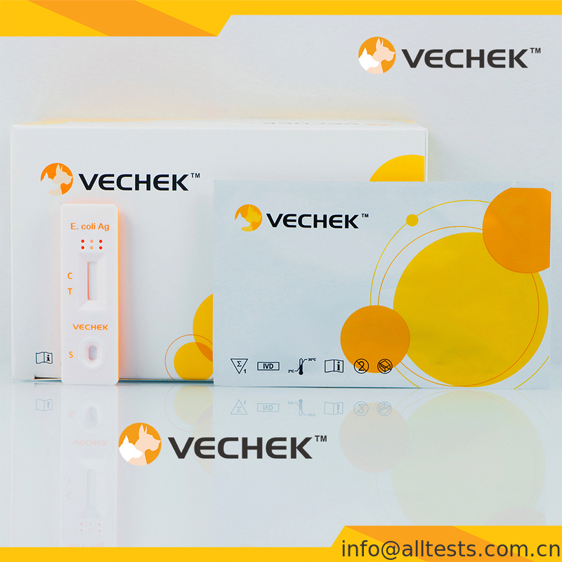 La cassetta di prova rapida dell'antigene di E. Coli (feces) è un immunoassay cromatografico rapido per la rilevazione qualitativa dell'antigene di E. Coli O157 nelle feci degli animali.